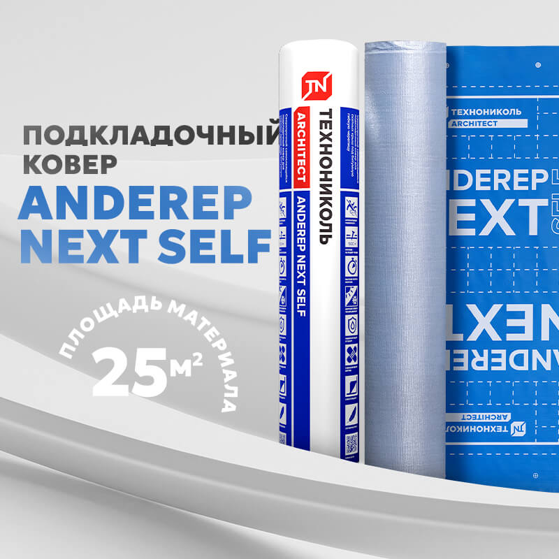 Подкладочный ковер ANDEREP NEXT SELF применяют в качестве гидроизоляционного покрытия в системах скатных кровель с покрытием из гибкой черепицы.
