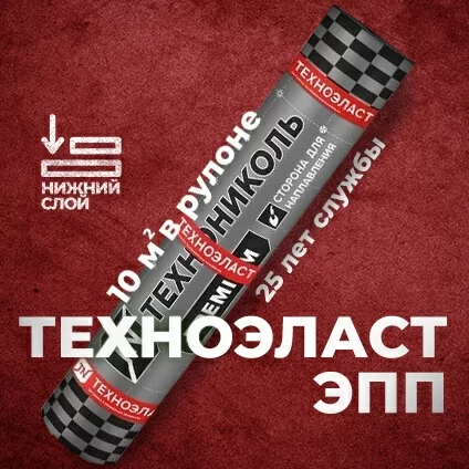 Техноэласт ЭПП – наплавляемый материал для кровли и гидроизоляции. Изготавливается с помощью двухстороннего покрытия полиэфирного полотна битумно-полимерным составом с последующим нанесением полимерной защитной пленки.
