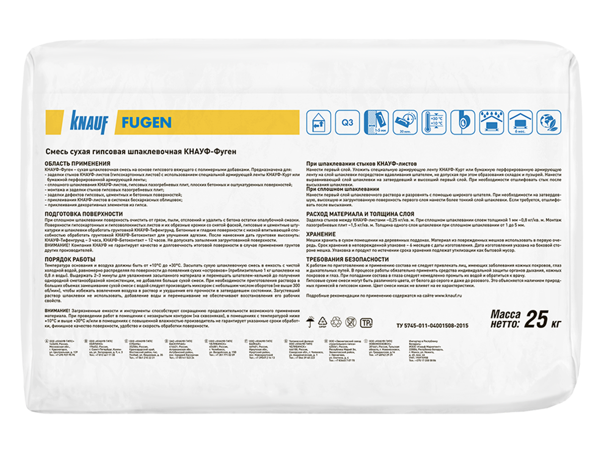 - Шпаклевка гипсовая КНАУФ-Фуген разработана специально для заделки стыков гипсокартонных КНАУФ-листов (ГКЛ)